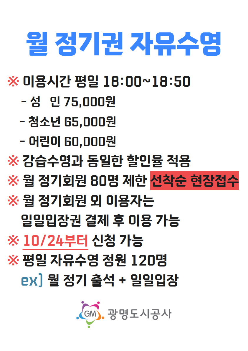 광명건강체육센터 자유수영 월 정기권 안내