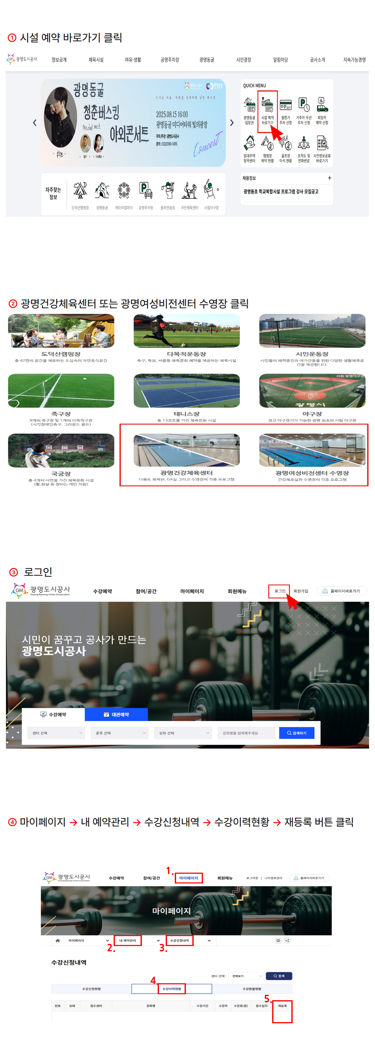 현장접수 가능시간 : 수영장 운영시간 내 접수가능