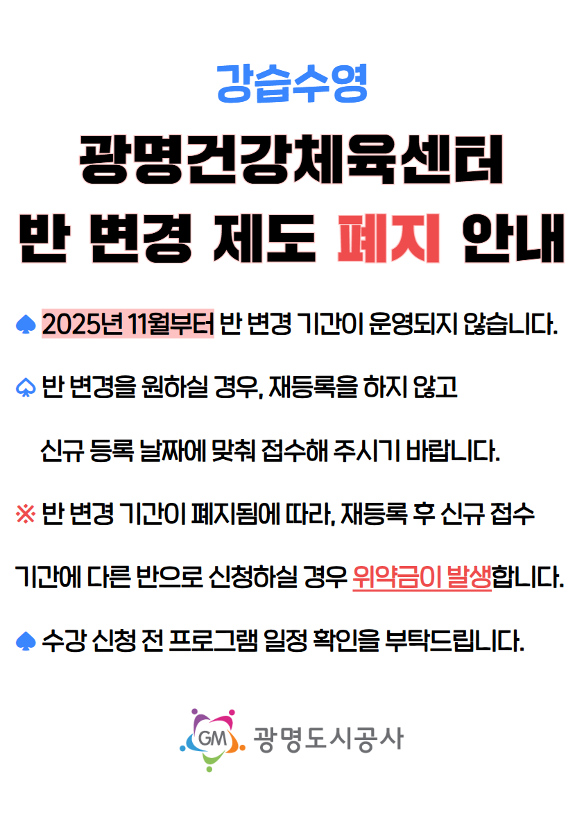 광명건강체육센터 반 변경 제도 폐지 안내